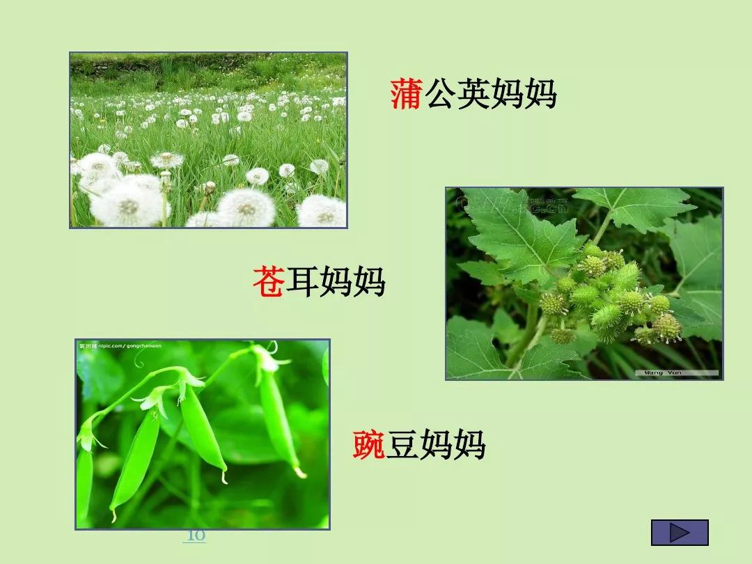 2.课文介绍了蒲公英、苍耳和豌豆这三种会传播种子的植物蒲公英靠风力传播种子,苍耳靠动物传播种子,豌豆靠太阳传播种子。