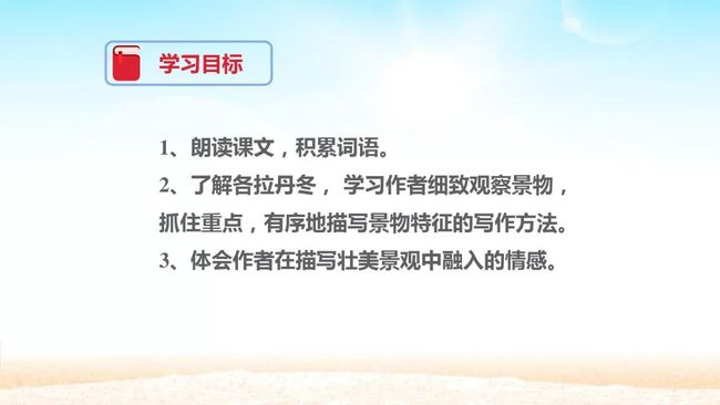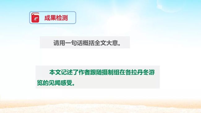 四、示例:“那是坚冰之下的流水之声”暗示各拉丹冬是长江的源头,“它一刻不停,从这千山之巅、万水之源的藏北高原流出,开始演绎长江的故事”表明各拉丹冬作为长江的源头,不仅仅哺育了西藏的土地及民众,更是一泻千里,浩浩荡荡地流经祖国大地,哺育中华民族的文明。这个结尾表现了文章的主题,也与文章标题“在长江源头各拉丹冬”相呼应。