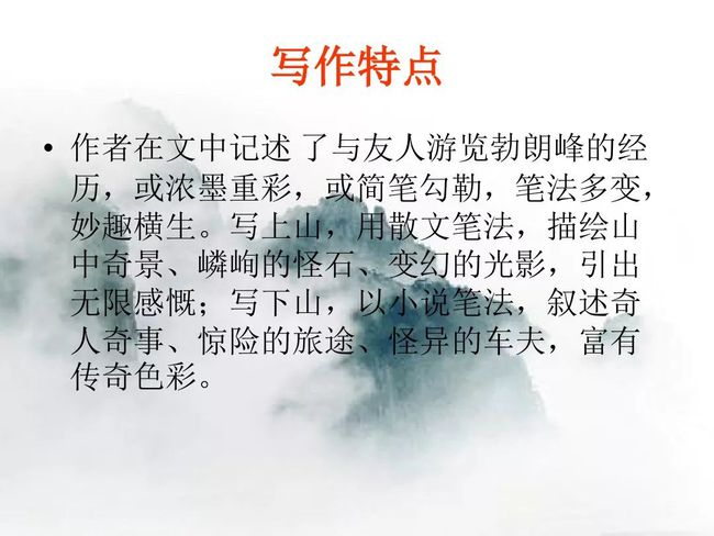 从视觉角度描绘岩壁峻峭,丘岗葱绿的特点,从听觉角度描绘路途瀑布轰鸣的特点,表现了勃朗峰的山中美不胜收的奇景。