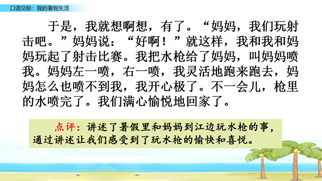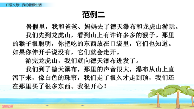林林:出去游玩,放松身心,真不错。我说说我在暑假里最难忘的一件事吧!