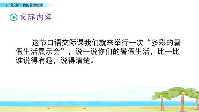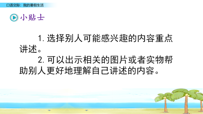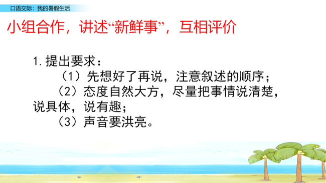 交流要求:先想好了再说,注意叙述的顺序;态度自然大方,尽量把事情说清楚,说具体,说有趣;声音要洪亮。