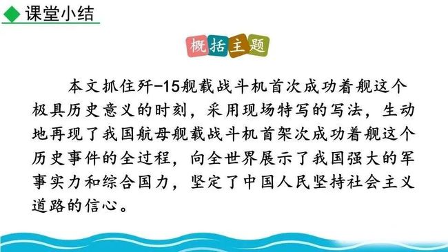 有何作用?重点采用了抒情和记叙的表达方式,进一步表达出了人们激动、兴奋的心情,同时也点明了舰载机成功着舰这个事件的重大意义。