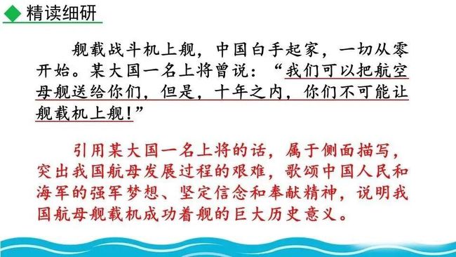 彰显出了先进发达国家对我国的歧视,暗示当时我国航母舰载机着舰面对的困难之大,同时这也更加激发了我国科研人员顽强不屈、为国争光的斗志,烘托了此时的成功。