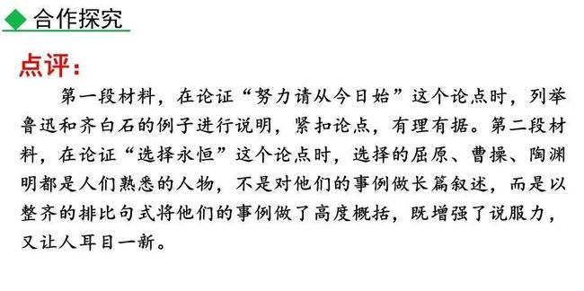 2.使用材料,还应保证材料与观点一致。