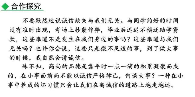 诚信其实并不难,只需要从一点一滴的小事做起就行。
