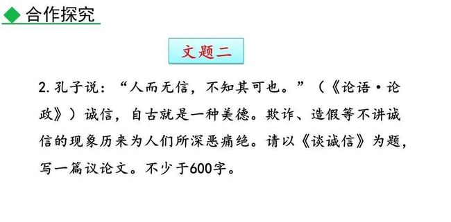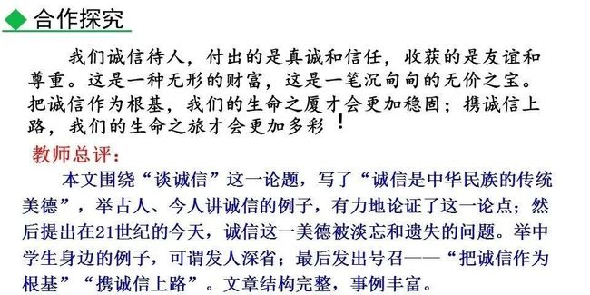 ”3这是一句很普通的话,没有华丽的词藻,却说明了一个大道理,说明诚信在我们的成长过程中起到了非常大的作用。