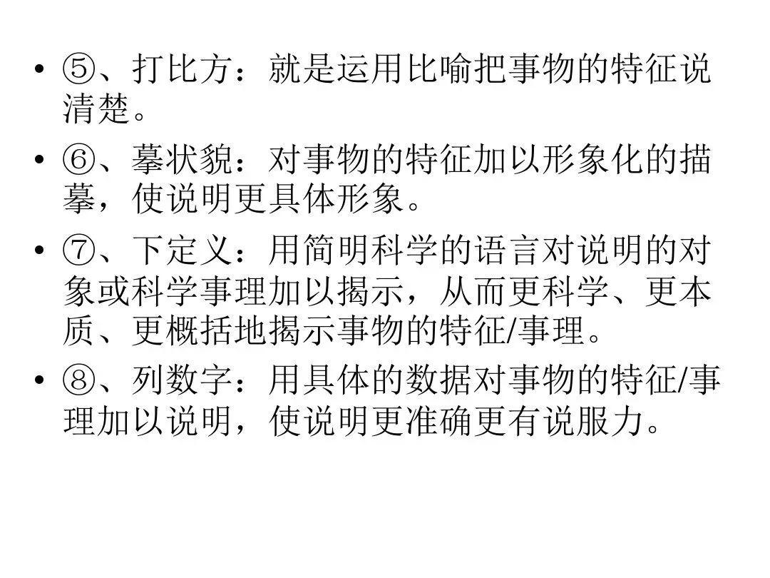 主要运用了列数字、列资料、打比方等说明方法。如本段开头对赵州桥的介绍即用了列数字的说明方法,准确、具体地说明了赵州桥的雄伟;在说明赵州桥的构造奇特时,引用张嘉贞的赞语,突出了施工技术的巧妙绝伦;引用张 的话说明了赵州桥外形的美观。在介绍大拱的特点时,运用打比方的说明方法,形象生动地说明了桥洞的形状。