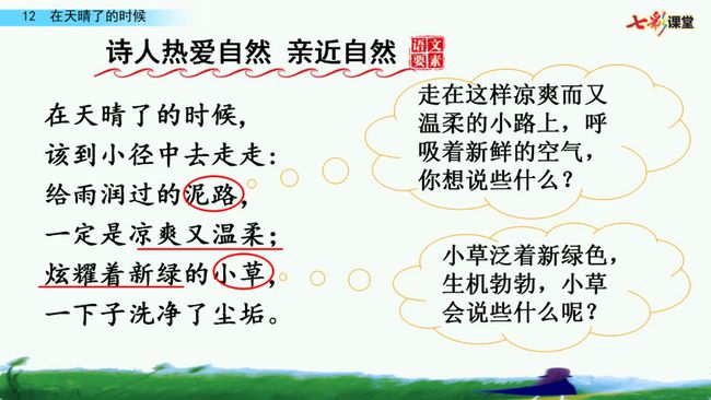 第二部分(2):写诗人再次召唤我们沿着小径去亲近自然。