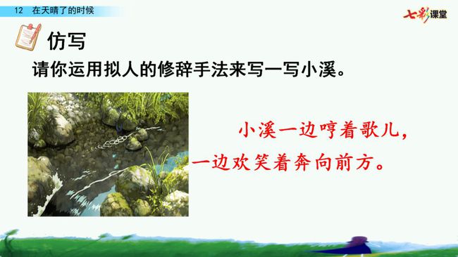 第三部分(3):写雨后的新阳、溪水、云的清新、自然与洒脱。