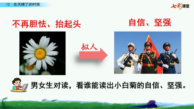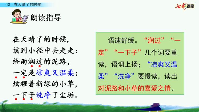2、炫耀着新绿的小草,一下子洗净了尘垢;