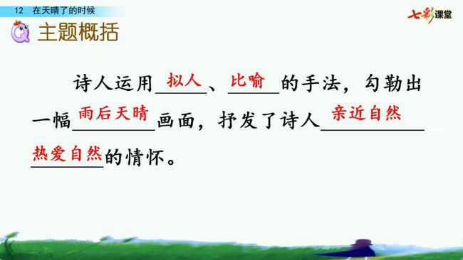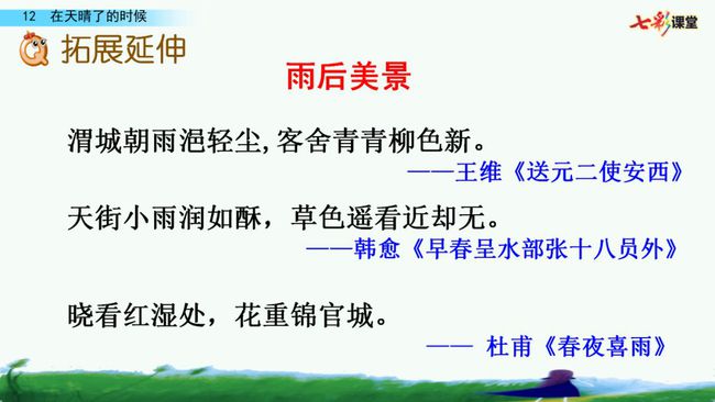 《在天晴了的时候》是“雨巷诗人”戴望舒的一首小诗,让我们感受到了雨后扑面而来的清爽无比的乡土气息。